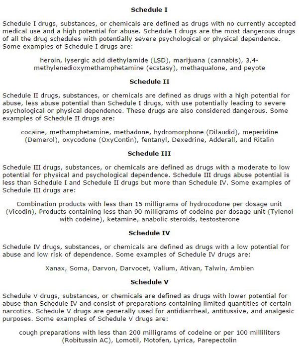 Well thought out Don, we agree. Below is the Drug Schedules from the DOJ website
